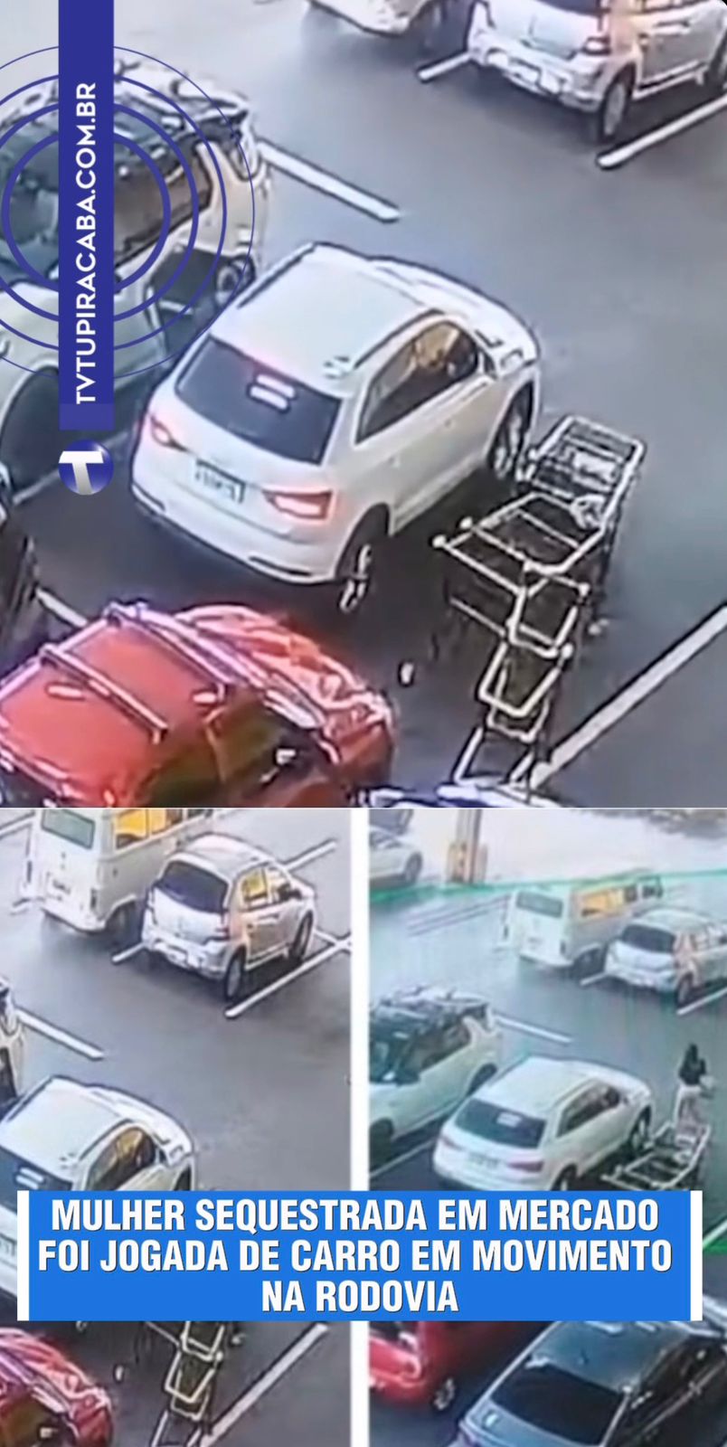 📹 Câmeras de segurança flagraram o sequestro. Um dos carros usados no crime foi encontrado abandonado.