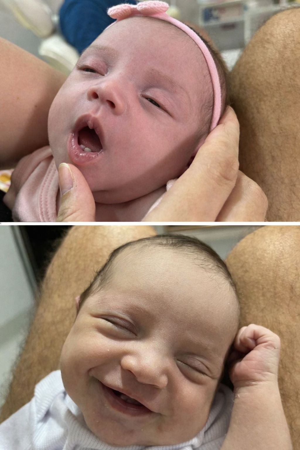 📌 A condição rara, chamada de dentes natais, foi confirmada pela equipe médica. Após exames, foi constatado que os dentinhos não tinham raiz e poderiam se soltar, trazendo risco de engasgo ou aspiração.