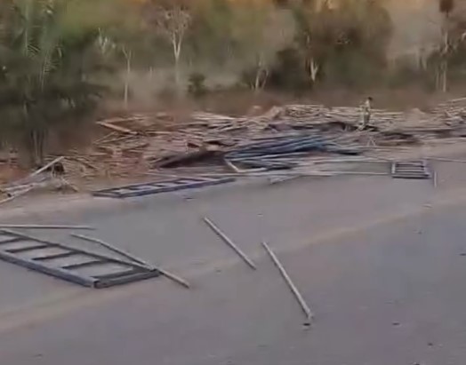 Um grave acidente ocorreu na manhã desta segunda-feira na GO-237, próximo ao Clube Bucania. Um caminhão que transportava a estrutura metálica do rodeio com destino a Niquelândia tombou em uma curva perigosa, provocando uma situação alarmante na rodovia.