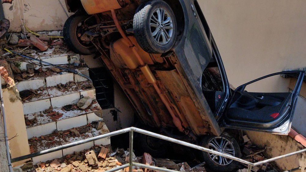 Com o impacto, houve danos na estrutura do imóvel e até risco na rede elétrica, exigindo ação da companhia de energia.