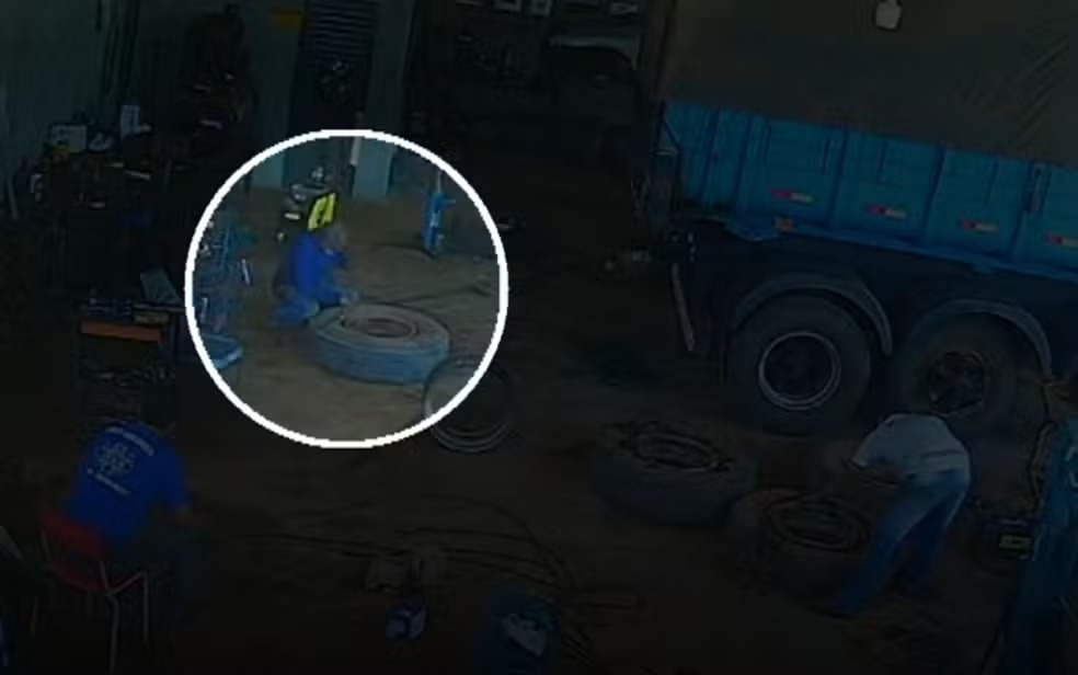 Um trágico acidente foi registrado na cidade de Matrinchã, no Centro-Oeste de Goiás, quando um caminhoneiro de 56 anos perdeu a vida após um pneu explodir enquanto era inflado com um compressor de ar em uma oficina mecânica. O caso ocorreu na última semana e foi flagrado por câmeras de segurança do local, revelando o momento exato da detonação e a reação desesperada dos presentes.