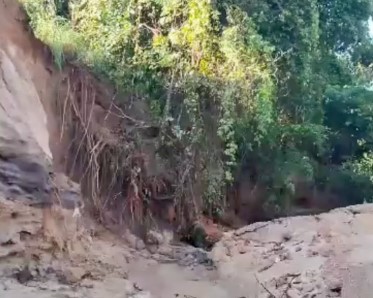 O vídeo, enviado por um morador, mostra os entulhos e pedaços da ponte envolvida por muita lama e vegetação local.