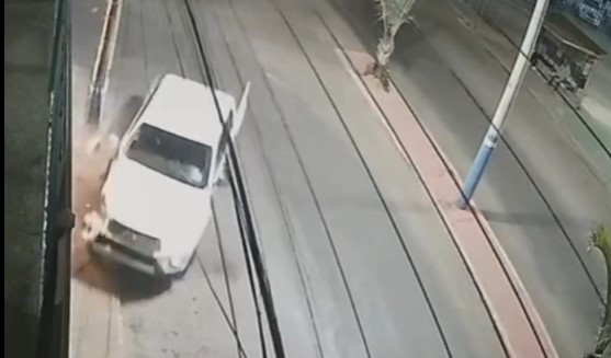 Motorista em uma Hilux Branca entra na contramão e colide com poste na Avenida Brasil em Niquelândia