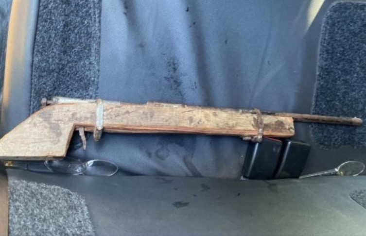 A equipe se dirigiu ao endereço e encontrou J.V.A. em casa, que admitiu ter ameaçado seu pai com a espingarda enquanto estava embriagado. Durante a abordagem, J.V.A. foi questionado sobre a posse e registro da espingarda, ao que ele respondeu que não possuía registro, que a arma estava em cima da geladeira, dentro da casa, sendo de fabricação caseira.