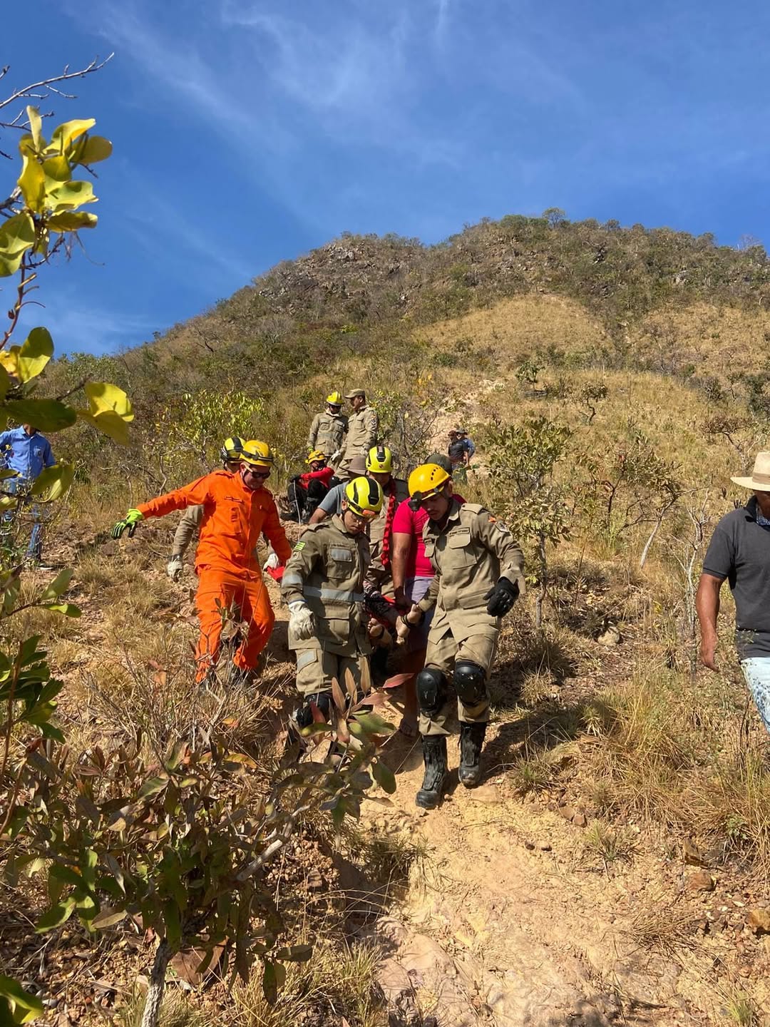 Cerca de uma hora e meia depois, por volta das 7h45, a situação se transformou em horror: uma das participantes, identificada como Alice Gonzaga Coelho, 71 anos, perdeu o equilíbrio e despencou de uma altura estimada em 50 metros. O impacto causou ferimentos múltiplos, incluindo um traumatismo craniano grave com afundamento do crânio.
