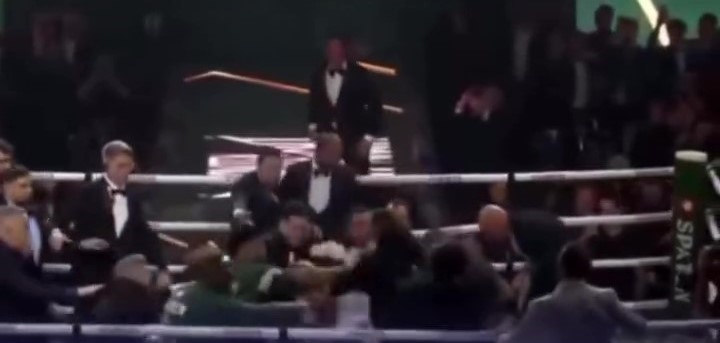 Antes mesmo do anúncio oficial da vitória de Popó — por desclassificação de Wanderlei —, os integrantes das duas equipes invadiram o ringue como hienas famintas por confusão, e o resultado foi o caos completo. Wanderlei, visivelmente abalado, levou um golpe certeiro no queixo e apagou na lona. Isso mesmo: nocauteado no meio da bagunça!